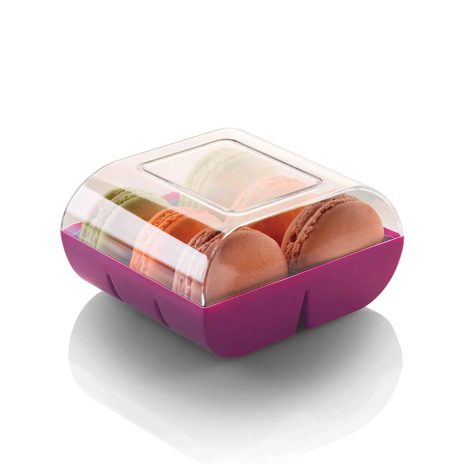 Plastová krabička na makronky na 6 ks růžová slouží k prezentaci a ochraně makronek