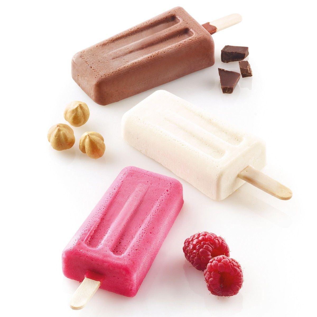 - Vyjmutí: Díky pružnému silikonu stačí lehce ohnout formu a nanuky snadno vyskočí ven.